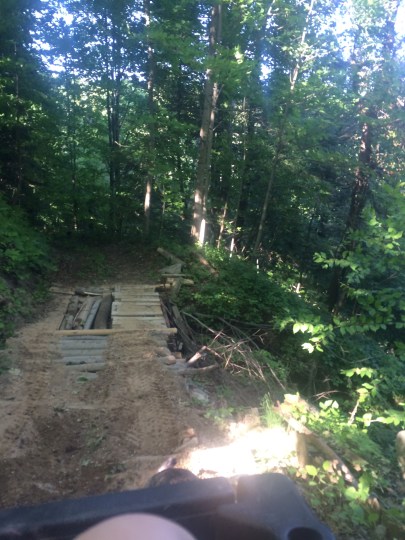 Kelly’s dad took Steve and I and a few other people on a four-wheeler ride, and I was really excited because I thought it would just be a nice, quiet ride through their property, but NOPE! He took us FULL-ON off-roading! At one point, we were going across a man-made bridge that did not look like it could hold us up! Thankfully, Steve was sitting beside me and he had his arm across me the whole time, my own personal seatbelt!